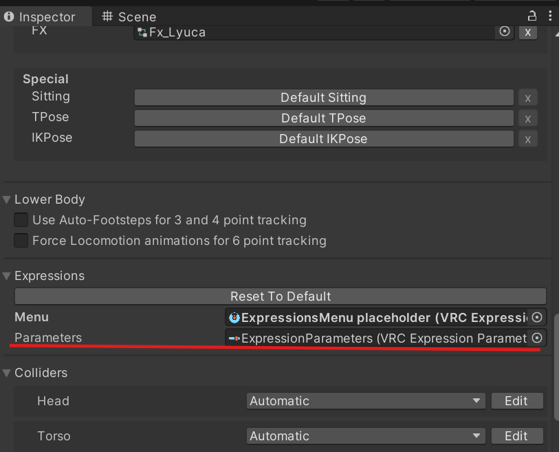 最後。ここがとにかく忘れがち。Parameterを選んで、Avatar ParameterにNekoHandというのがあるよ、と設定する。これがないと動かない