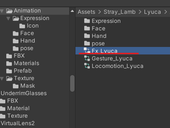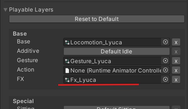 FXレイヤー(Animator Controller)をダブルクリック↓