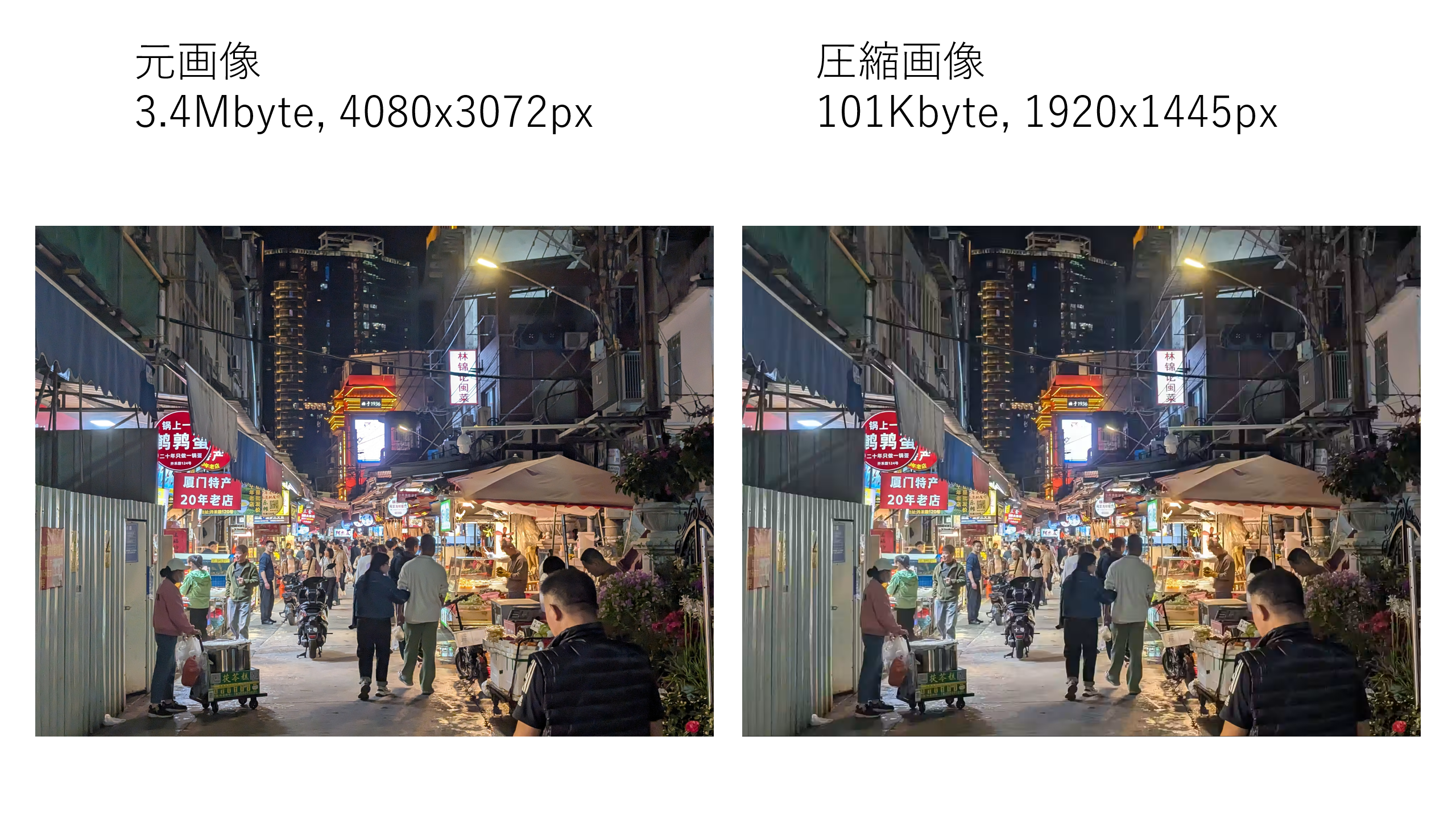 であるとき、Google pohotosがavifに対応しているという情報を知る。Google Driveアプリ(PC版Syncアプリ)はavif対応していないけどWeb版のGoogle photosはavif対応しているという。じゃぁavif変換するツールで一発じゃん! わははと思ったら写真のEXIF(撮影日時)をちゃんとJPG/HEICから引き継いでavifに埋めてくれるツールでかつ容量指定ができてリサイズもできるなんてツールがほぼ皆無ということがわかる。Exif引き継いでくれるけどリサイズ機能がないとか、リサイズ機能あるけど容量指定圧縮ができないとか(だいたいこれ)。圧縮率指定じゃなくて容量指定したいんだよ!!