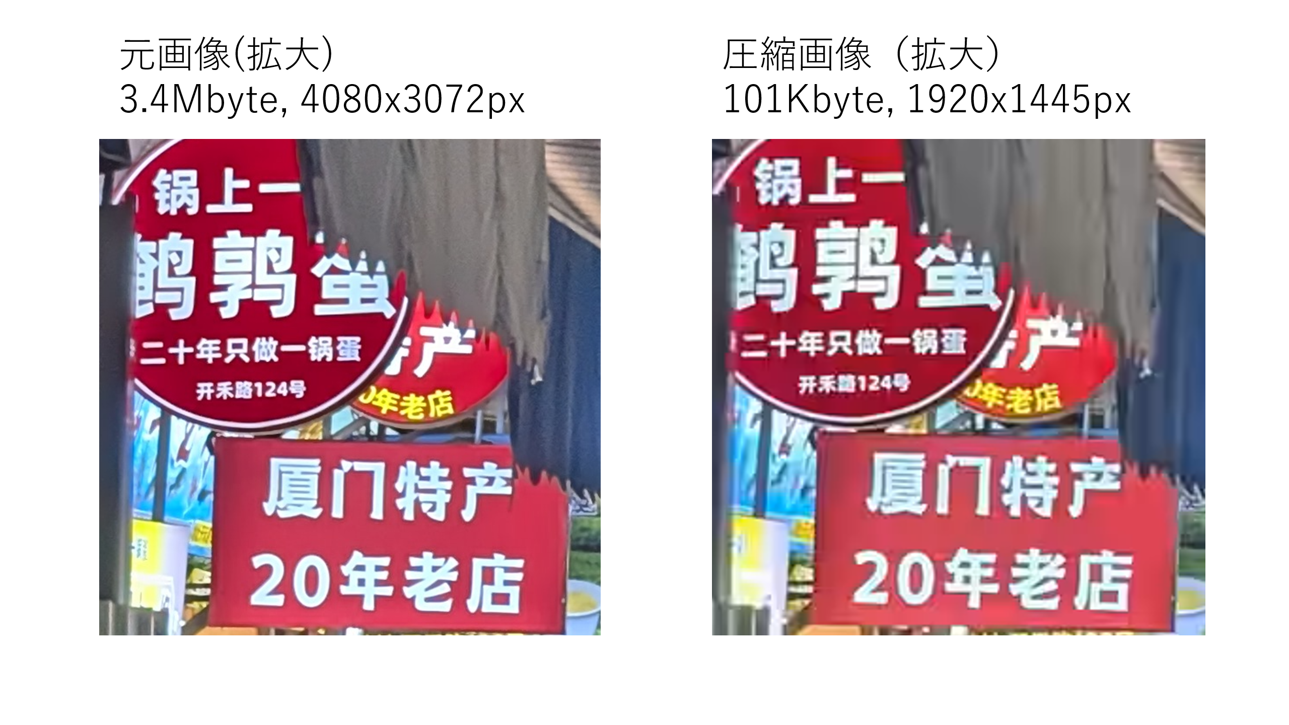 もちろん拡大すればアラは目立つが、スマホ画面でぱっと友達に見せるレベルであれば全く問題ないと思える。100kbでこんだけいければ十分でしょ。